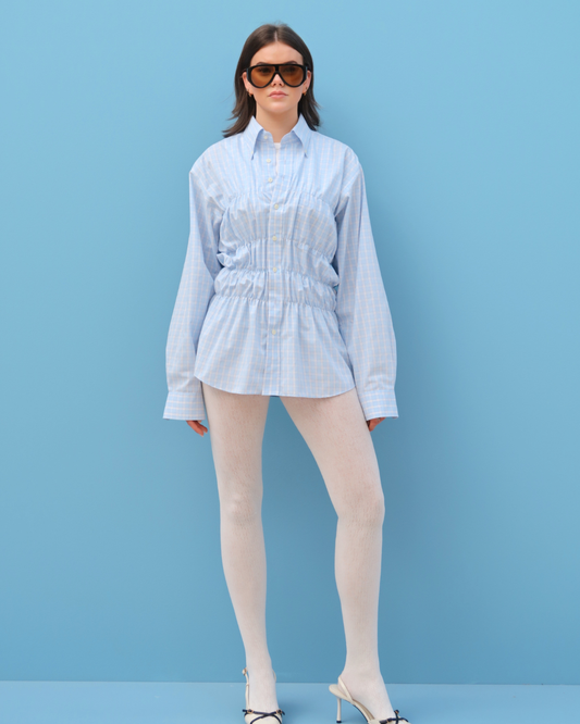 CF Smocked Shirt - Light Blue Check